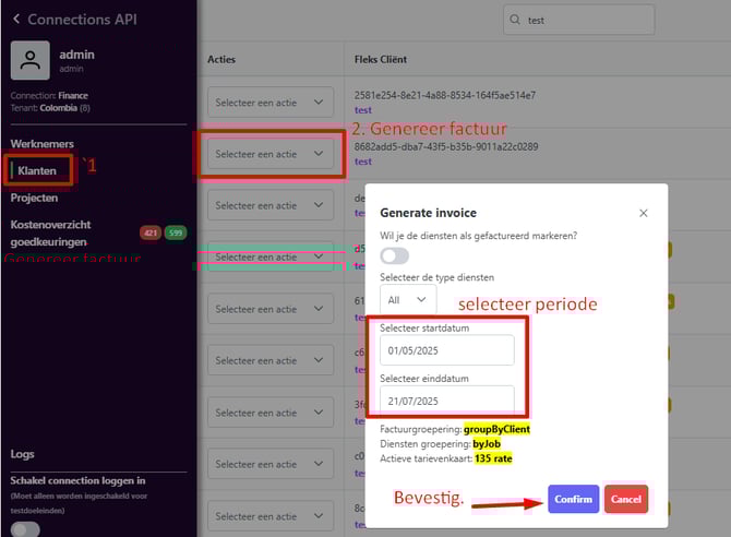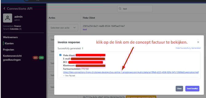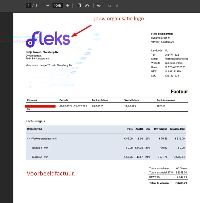 | Mailtemplate | Connectieportaal → Klanten → Fleks-facturering | Wordt gebruikt voor verzenden factuur |